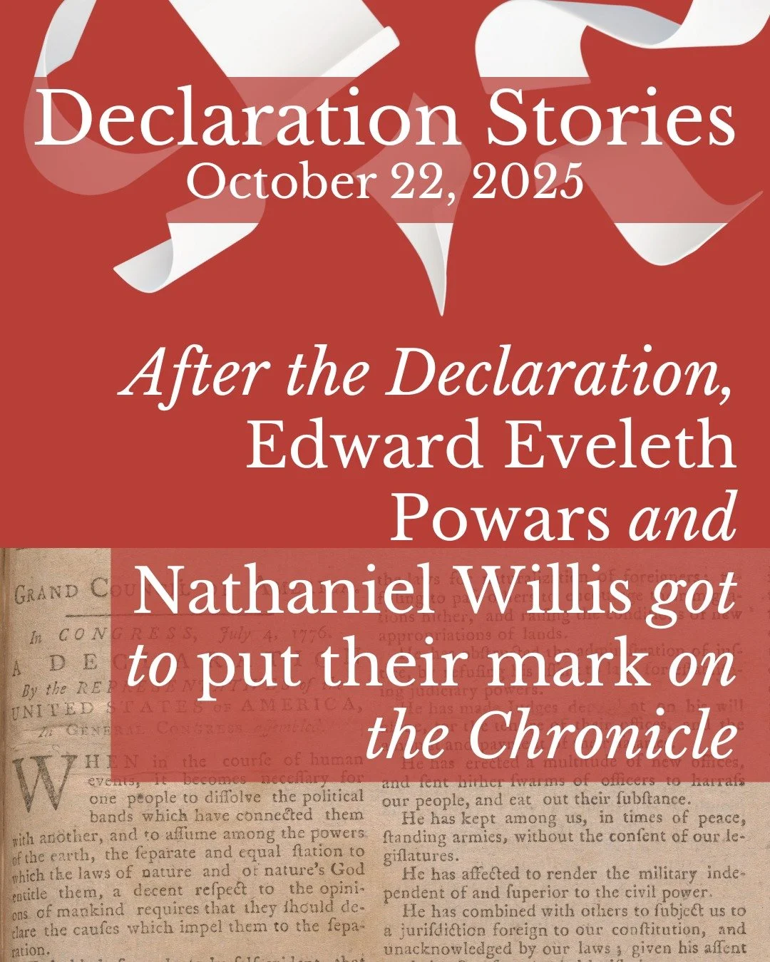 Every copy of the Declaration of Independence has a story to tell Read the Latest Story Handheld Declaration of Independence Subscribe to Declaration Stories A weekly series, every Wednesday from July 2025 through July 2026Commemorate the 250th anniversary of the Declaration of Independence by learning the stories behind different printed and manuscript copies of the Declaration created in 1776 First Name Last Name Email Address Subscribe Thank you for subscribing! Subscribe to News from 1776 Receive daily emails (except Wednesdays) beginning January 1, 2026A daily digest that will transport you to Philadelphia 250 years ago through the city’s newspapersExperience what it was like to read news from around the world, essays about the latest political developments, poems, and advertisements during this critical year First Name Last Name Email Address Subscribe Thank you for subscribing! Counting down to July 4, 2026 Follow @declarationstories on Instagram View fullsize View fullsize View fullsize View fullsize