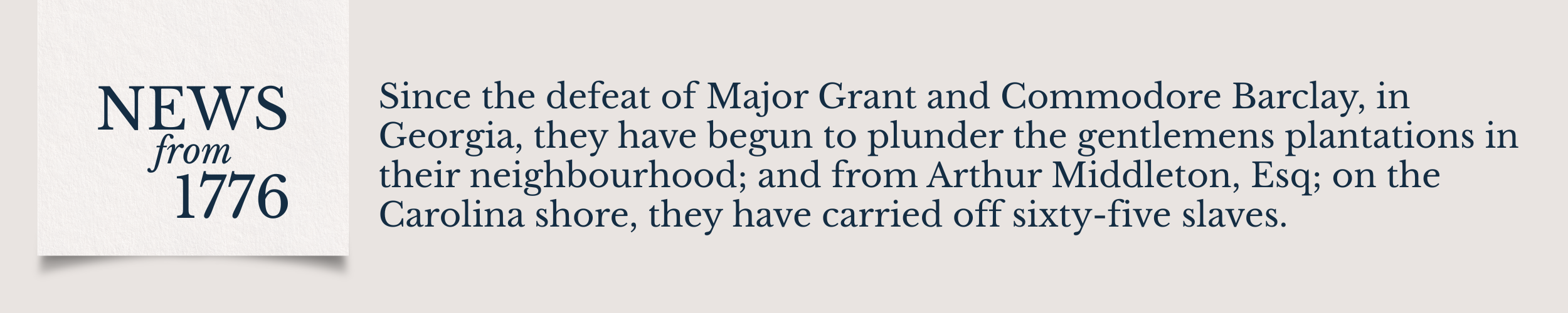 Since the defeat of Major Grant and Commodore Barclay, in Georgia, they have begun to plunder the gentlemens plantations in their neighbourhood; and from Arthur Middleton, Esq; on the Carolina shore, they have carried off sixty-five slaves.