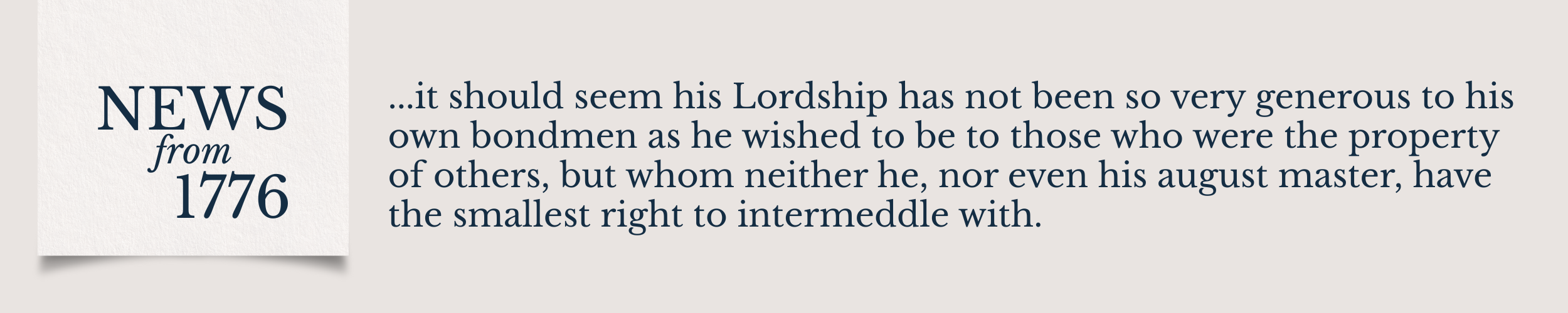 Notwithstanding Lord Dunmore’s late proclamation for emancipating such slaves as should repair to his standard, we are informed, by a correspondent, that two of his own Negroes, with an overseer, passed through Fredericksburg one day last week, on their way to his Berkeley plantation; so that it should seem his Lordship has not been so very generous to his own bondmen as he wished to be to those who were the property of others, but whom neither he, nor even his august master, have the smallest right to intermeddle with.