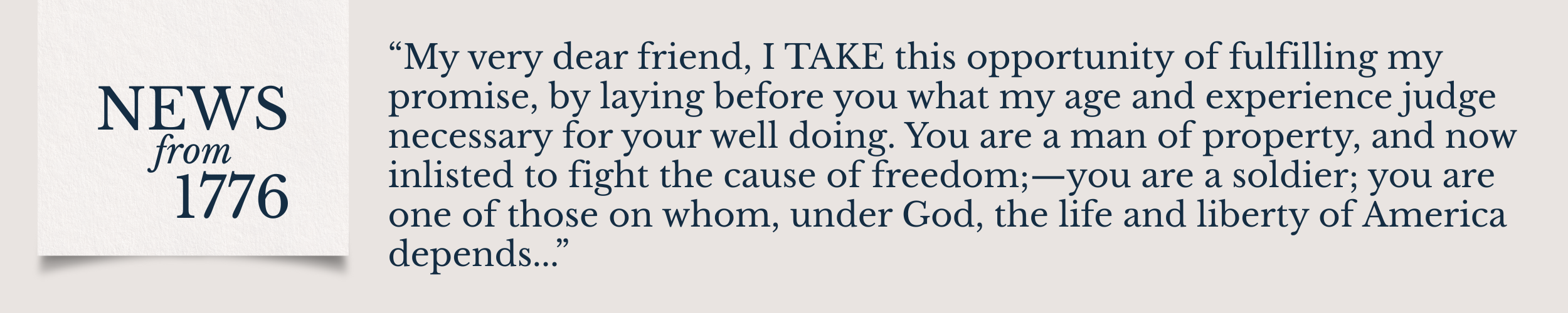 You are a man of property, and now inlisted to fight the cause of freedom;—you are a soldier; you are one of those on whom, under God, the life and liberty of America depends; consider the dignity of your station; consider the mighty trust reposed in you; consider yourself, and it is scarce possible you will err in your conduct.