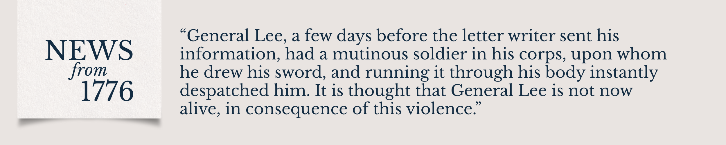 This story was fabricated. Readers of the Evening Post knew that Lee was still very much alive. In reality, the American public could not “depend upon the authenticity” of the article from the London Packet. That said, Charles Lee eventually gained a reputation for being hot-headed, and before the end of the war, he was court martialed and engaged in a duel.