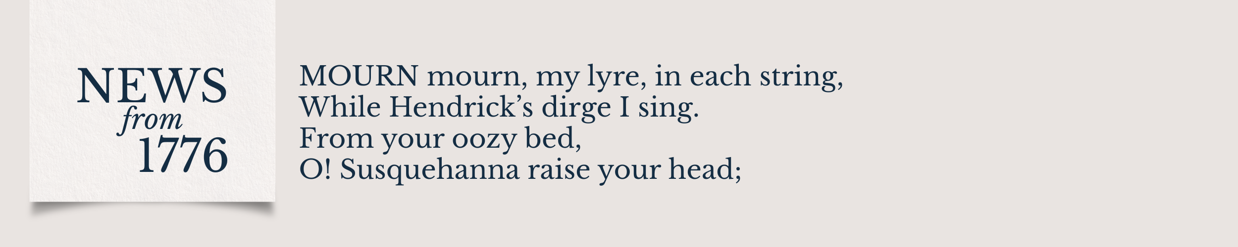 While the death of General Richard Montgomery was the dominant story from Canada in early 1776, another death held a closer connection to Pennsylvania. This mournful poem, “On the Death of Capt. HENDRICK’s,” reflects on Captain William Hendricks, commander of a rifle company in the 1st Pennsylvania Regiment, who died in Canada on January 1, 1776. In his oration in memory of General Montgomery in February 1776, William Smith gave a nod to “the brave Captain Hendricks,” a man he had known “from his infancy.” Smith said that, after his commanding officer, Major General Benedict Arnold, was wounded, Hendricks “sustained the fire” of the British garrison until he was “shot in his breast” and “immediately expired.” Hendricks was from Cumberland County, Pennsylvania, and the poem references the Susquehanna River, at the eastern edge of the county.